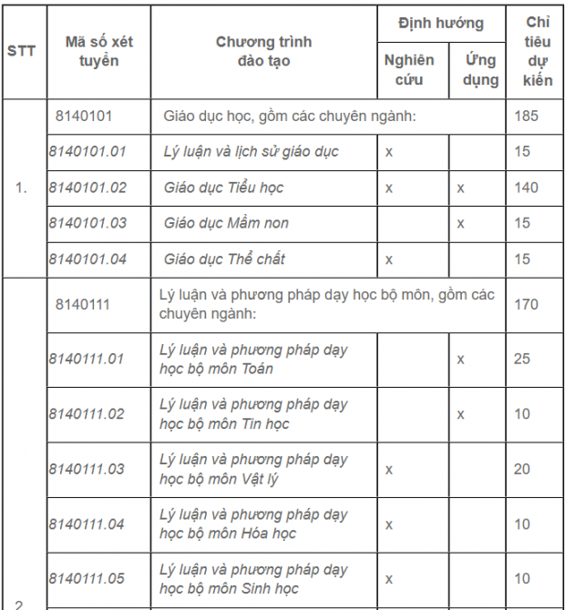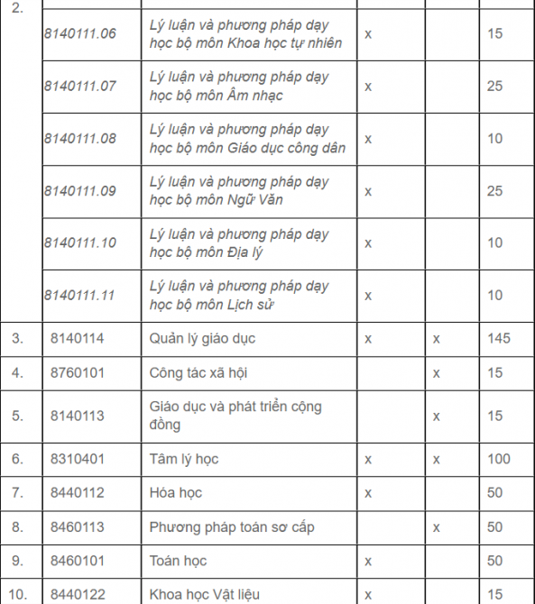 * Khối ngành I (Quản lý giáo dục, Giáo dục học, Lý luận và phương pháp dạy học bộ môn, Giáo dục và phát triển cộng đồng):